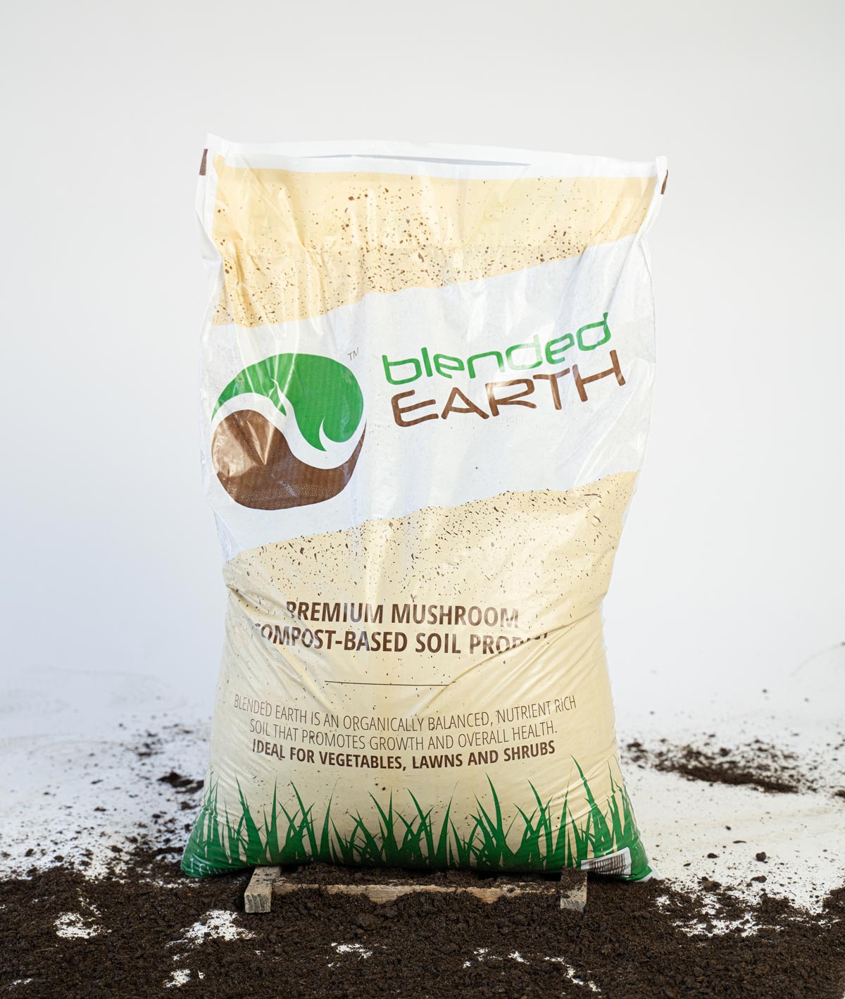 Blended Earth is a high-quality soil product made from mushroom compost. The compost is created using nutrients from commercial mushroom farms to enhance mushroom growth. After harvesting, the compost is carefully sterilized and recycled into Blended Earth. We add our special ingredients to create a complete, ready-to-plant soil.